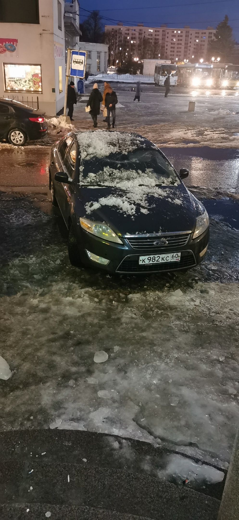 Льдина пробила лобовое стекло и заднее у такси, которое стояло возле дома № 6 на Подгорной улице. Однако пользователи отметили, что владелець поставил свое авто рядом с лентой, которой дворники огораживают опасные участки.