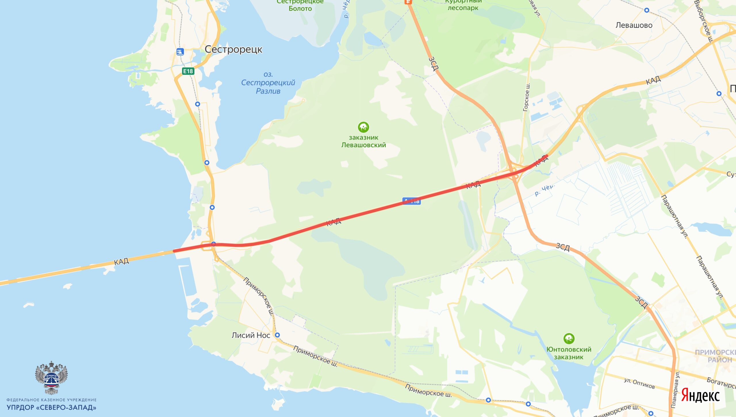 Как сообщила сегодня пресс-служба ФКУ Упрдор «Северо-Запад», с 8 апреля по 1 сентября будет полностью закрыто внешнее кольцо на участке с 1-го по 11-й километр, между развязками с ЗСД и Приморским шоссе.