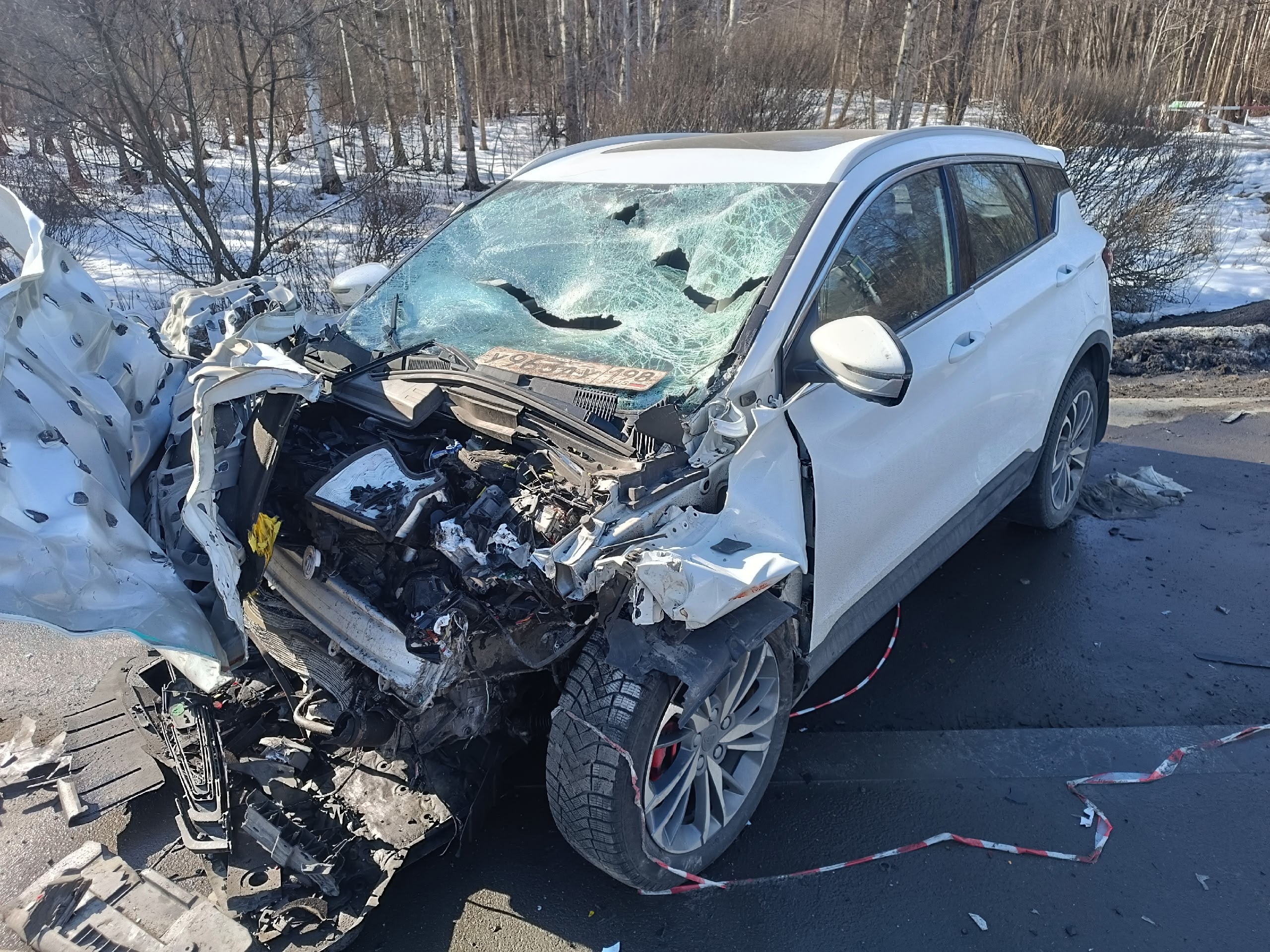 Удар был такой силы, что у «Джили» была смята вся передняя часть, а от «Хавала» буквально осталась лишь передняя половина. Водитель последнего получил серьезные травмы и был в тяжелом состоянии доставлен в больницу.
