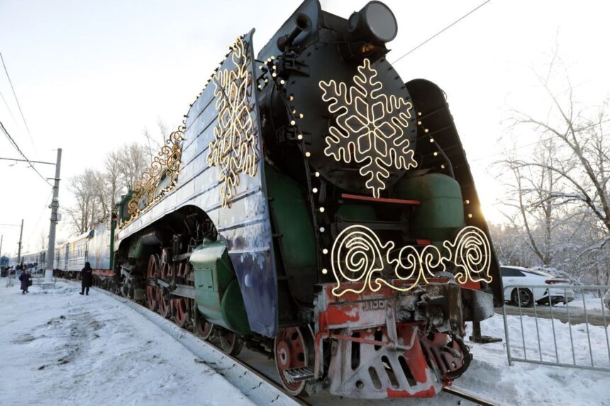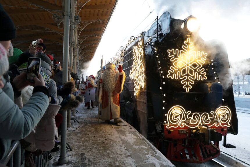 Поезд Деда Мороза прибыл на железнодорожную станцию Новый Петергоф 6 января. Побывать в волшебном составе можно 7 января, после чего он продолжит новогоднее путешествие по России.