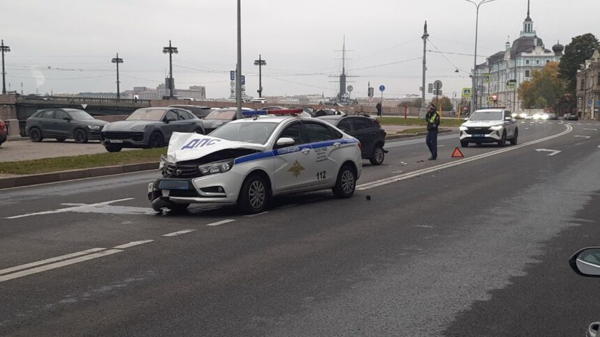 Участником аварии в Петроградском районе стал полицейский автомобиль – второй раз за сутки.