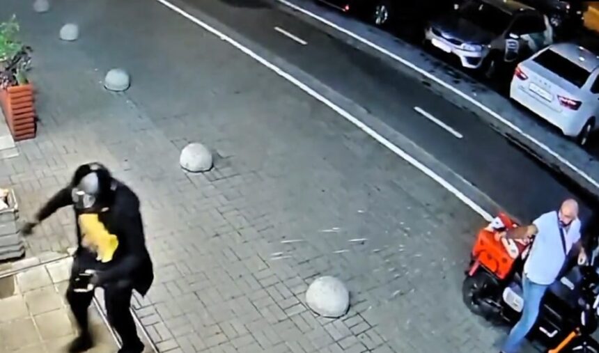 С намерением вызвать полицию курьер направился к двери ресторана. В этот момент сидевший на велике мужчина вытащил из сумки травматический пистолет и выстрелил ему вслед.