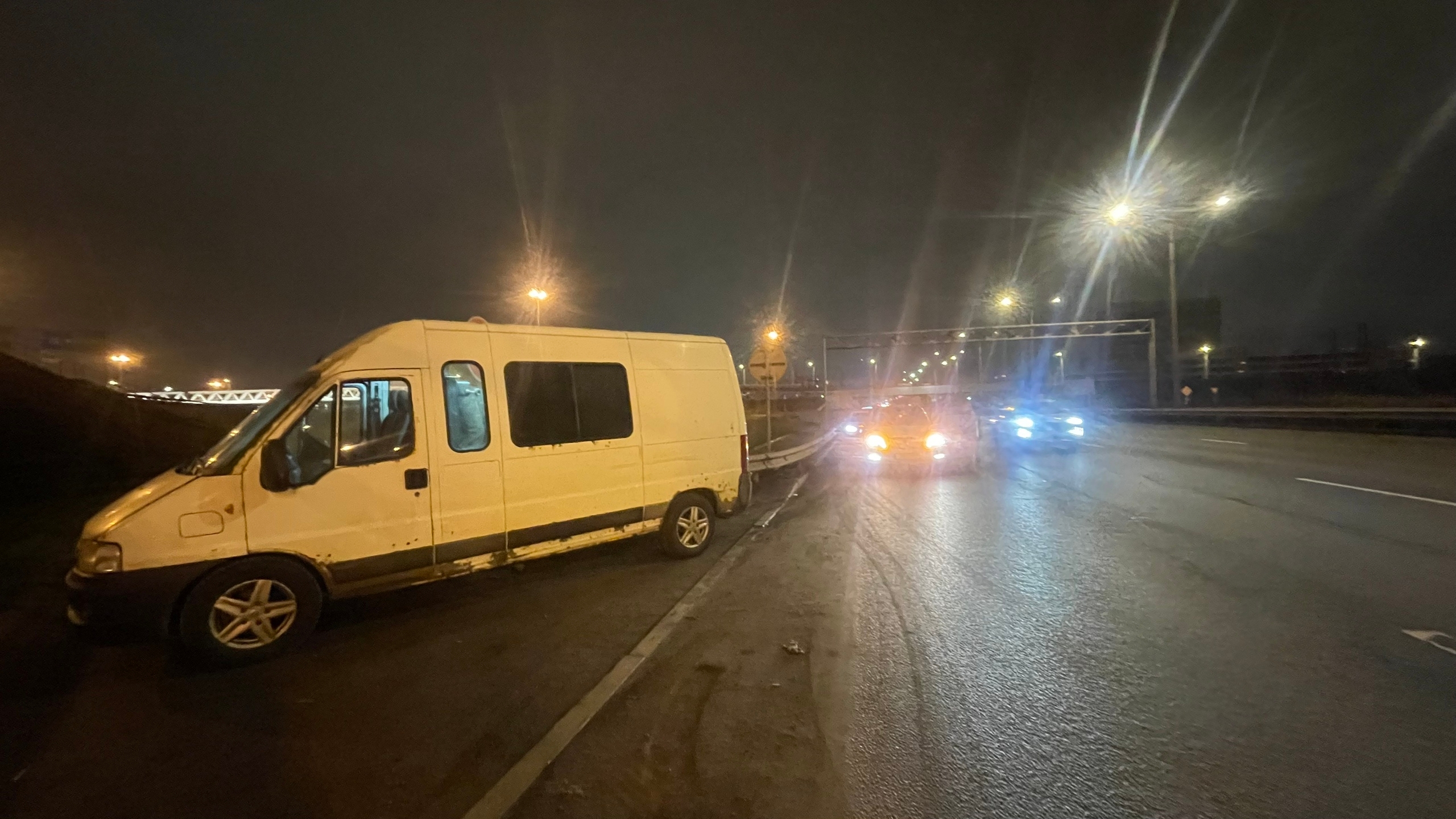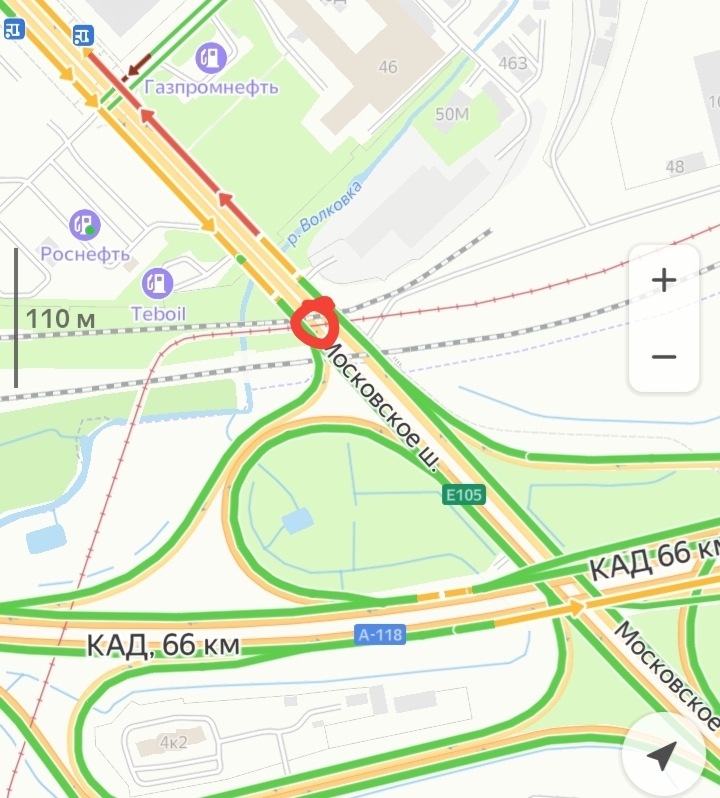 «Массовое пробитие колес» наблюдается на Московском шоссе в направлении области, недалеко от развязки с Кольцевой автодорогой.