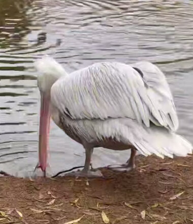 «Кстати, о походке. В целом на земле пеликан чувствует себя не очень уверенно. Ходит он медленно, вперевалку, что можно заметить на видео. Взлетает с земли с большим трудом, делая несколько прыжков и отталкиваясь обеими лапами сразу. Зато Полкан – превосходный пловец, держится на воде спокойно и взлетает с нее с легкостью», – рассказали в зоопарке.