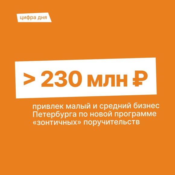 За время работы программы «зонтичных» поручительств, запущенной Фондом содействия кредитованию МСБ, малый и средний бизнес Петербурга привлек 230 млн рублей