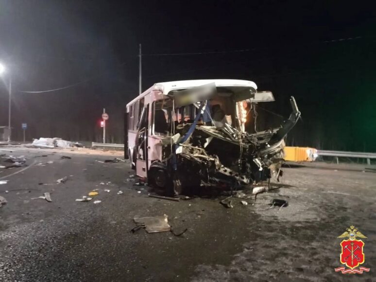По уточненным данным, авария случилась на 41-м километре автодороги А-120 «Санкт-Петербургское южное полукольцо» возле деревни Жабино. 34-летний водитель автопоезда марки «Шакман», отягощенного полуприцепом, выехал на регулируемый перекресток на красный для себя свет. В итоге его фура врезалась в пассажирский автобус «ПАЗ», который вез пассажиров в Волосово, рассказала пресс-служба ГУ МВД России по Петербургу и Ленинградской области.