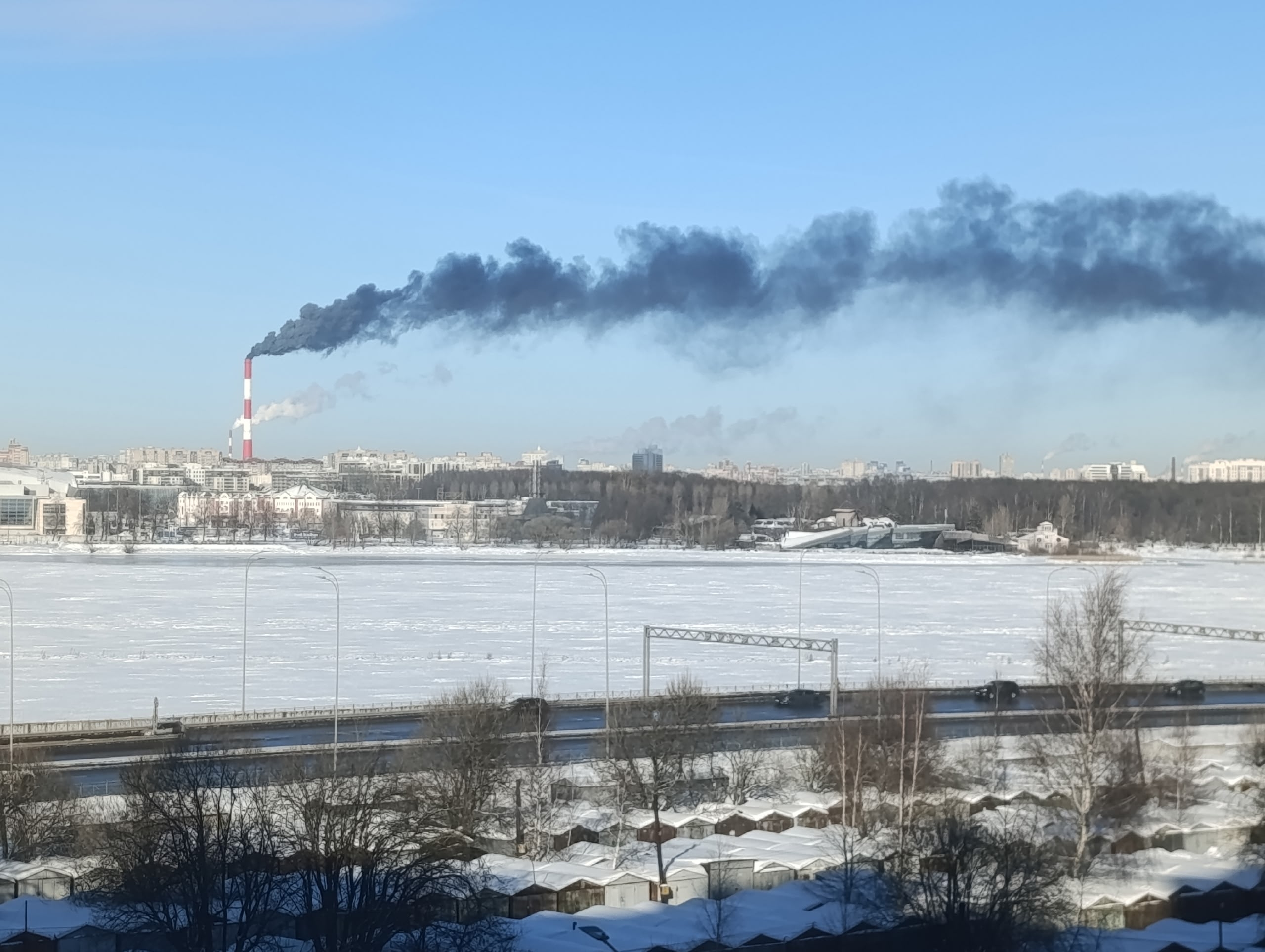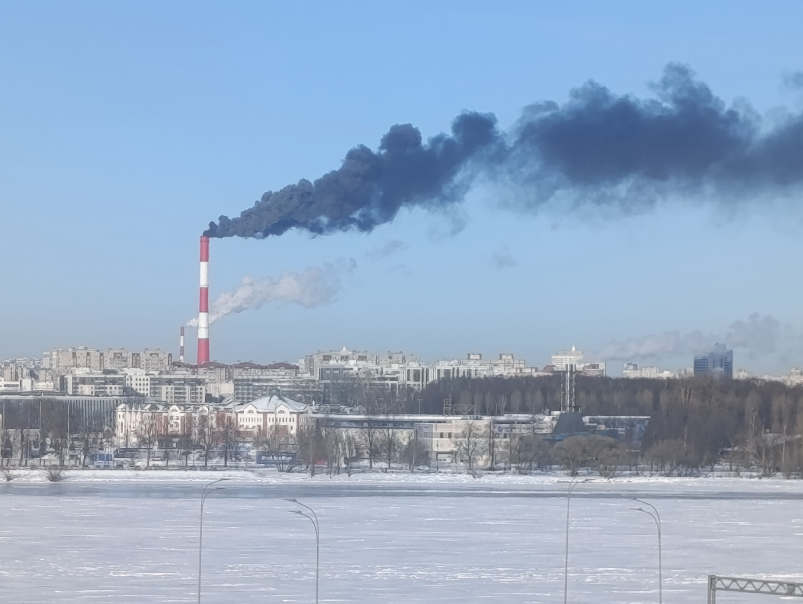 Дым из трубы котельной в Приморском районе Петербурга 23 февраля поменял цвет. Оказалось, что там проводились плановые работы по сжиганию мазута.