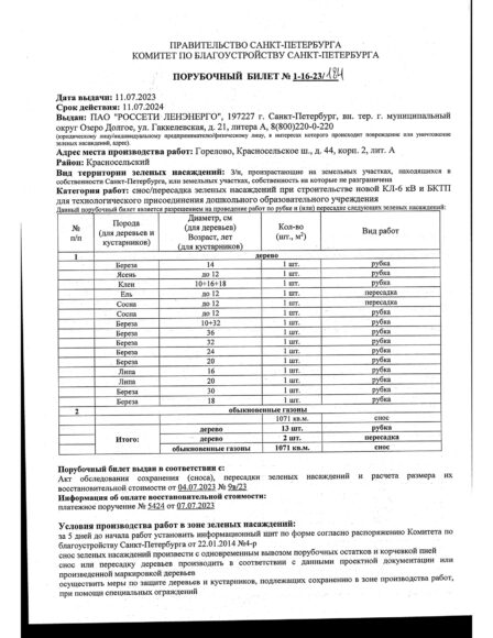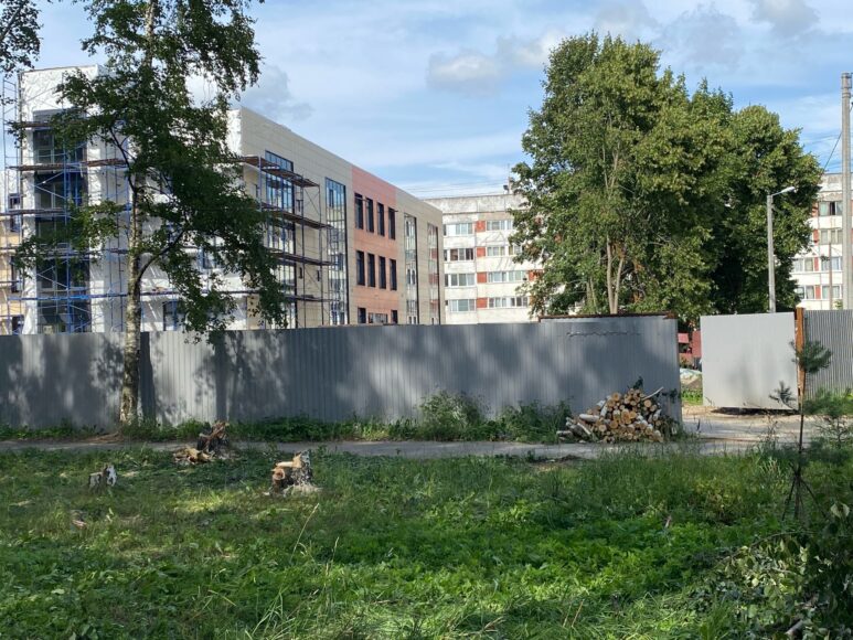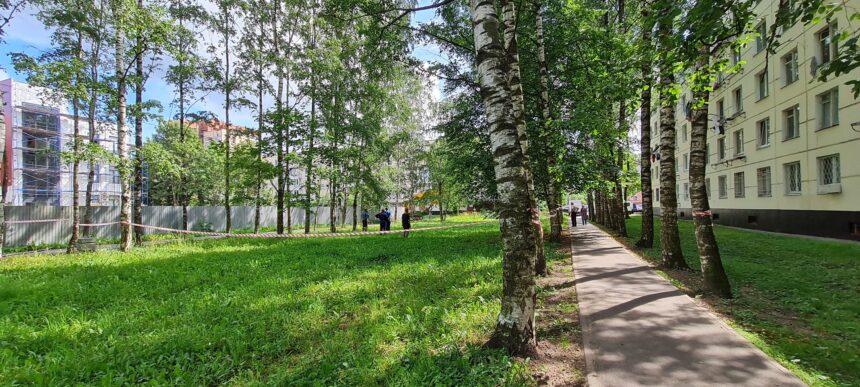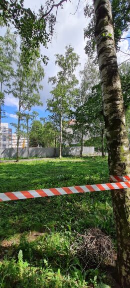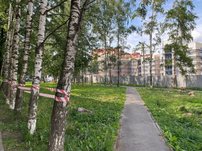 У подрядной организации есть порубочный билет, согласно которому она должна ликвидировать больше 1000 квадратных метров газона, снести 13 деревьев (8 берез, 2 липы, ясень, клен и сосну), а еще два дерева (сосну и ель) пересадить на новое место.