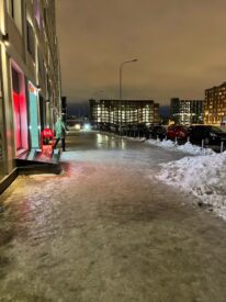 Скользкие тротуары, покрытые толстой коркой льда, больше не огорчают жильцов ЖК "Царская Столица". Они приглашают всех жителей Центрального района на импровизированный каток, который "организовала" для них управляющая компания.