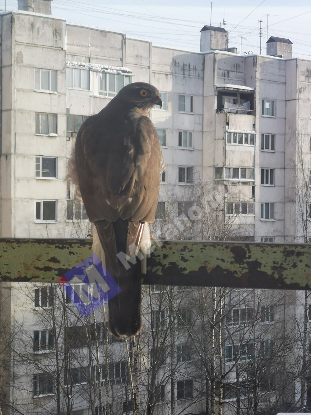 Хищная птица была замечена сегодня в спальном квартале Выборгского района Петербурга.